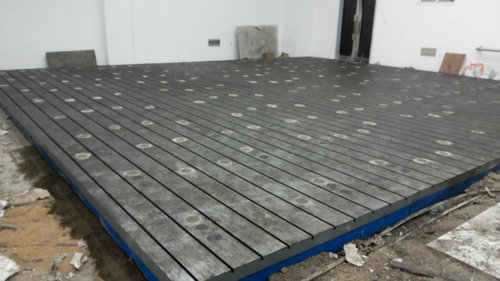 為沈陽客戶生產(chǎn)的設(shè)備運行試驗平臺,T型槽平臺,有2000*4000mmT型槽平臺拼接組成.采用頂絲和地腳螺栓的調(diào)整固定方式.